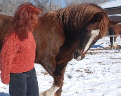 Patting his neck – whispering softly “good boy,” he lowers his head; forward on.