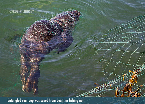A Seal Pup almost drowning, screeches for their mother! This Pup was cut loose by divers!