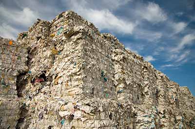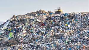 A MOUNTAIN of Plastic Trash! The front loader on this mountain of plastic is barely visible, Operating Weight, 34,678.7 lbs, minute in comparison to the visible plastics it attempts to move daily, and WHERE to?