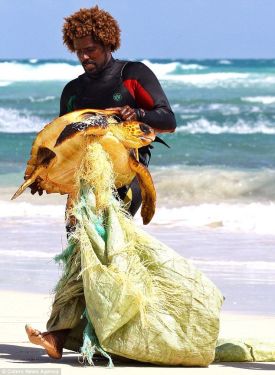 This scuba diver has saved a large turtle caught in netting & plastic, will the turtle survive its life span of approx.. 150 some years or be caught in our growing polluted ocean once again. Their fate depends on us Humans!